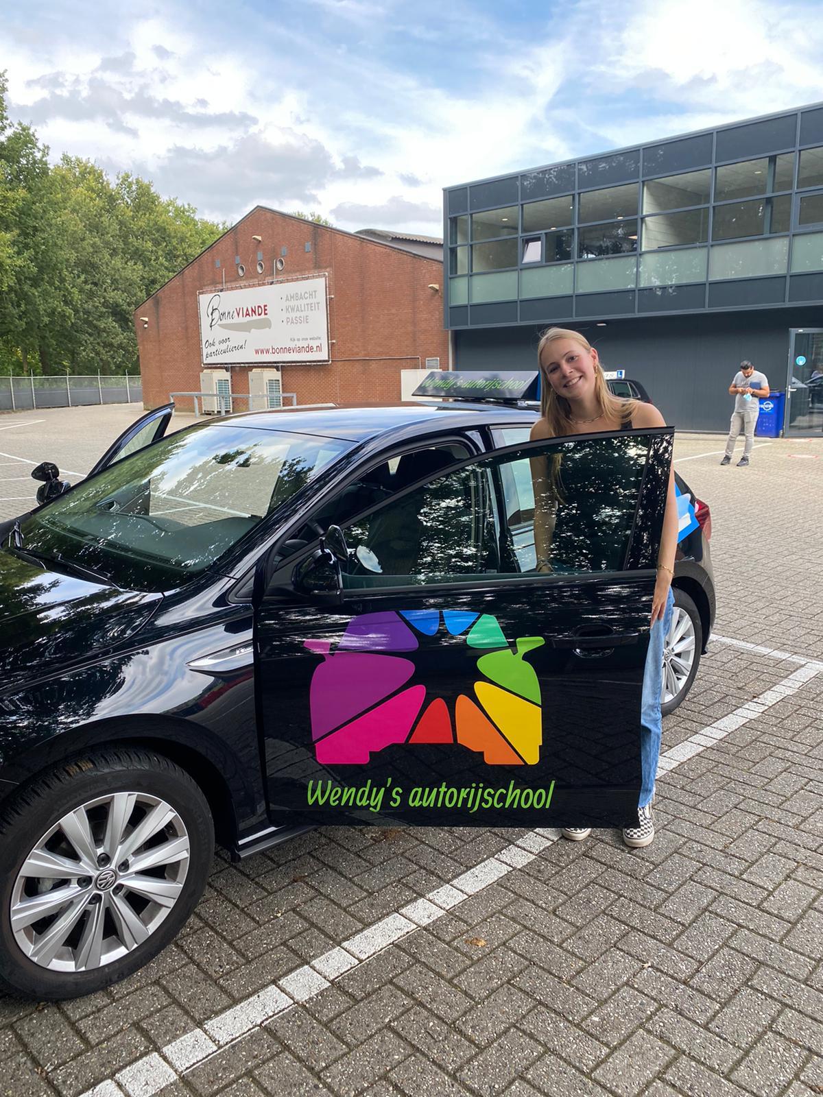 Glansrijk geslaagd bij Wendy! De rijlessen met Wendy waren altijd heel gezellig en leerzaam. Elke keer keek ik er weer naar uit om te mogen rijden. Door de gezellige sfeer